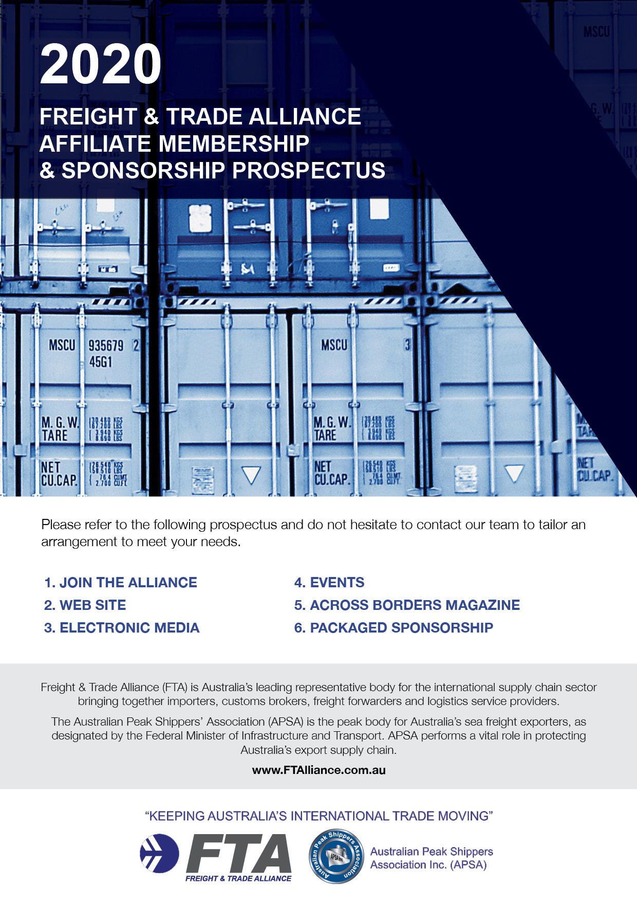 FTA and APSA offer a wide range of online media and events which provide unique sponsorship opportunities for entities wishing to engage with the freight and trade sectors.
